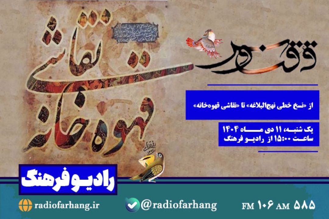 نگاهی از «نسخ خطی نهجالبلاغه» تا «نقاشی قهوهخانه» در « ققنوس» رادیو فرهنگ مجله ادبی «ققنوس» رادیو فرهنگ، یكشنبه 14 دی با تمركز بر ادبیات كلاسیك و معاصر، به بررسی ویژگیهای نثر ادبی ترجمههای خطی نهجالبلاغه میپردازد و در بخش دیگری، راهكارهای خلق داستانهای نبوی جذاب به جای موعظه برای كودكان و نوجوانان را مورد بحث قرار میدهد 1404/10/14