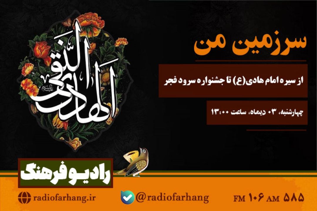 برنامه «سرزمین من» به تهیه كنندگی « امیررضا راز» ساعت 12:45روی موج اف ام ردیف 106 مگاهرتز و موج ای ام ردیف 585 كیلوهرتز از رادیو فرهنگ پخش می شود.