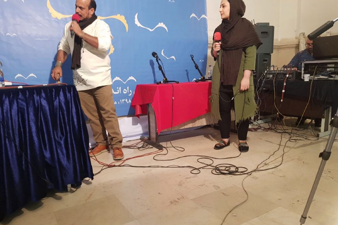 اجرای مرشد میرزا علی در غرفه رادیو فرهنگ در نمایشگاه كتاب- گفتگو با مدیر كل ارشاد استان یزد و علیرضا بهرامی (شاعر و روزنامه نگار) در برنامه صدای كتاب از نمایشگاه كتاب