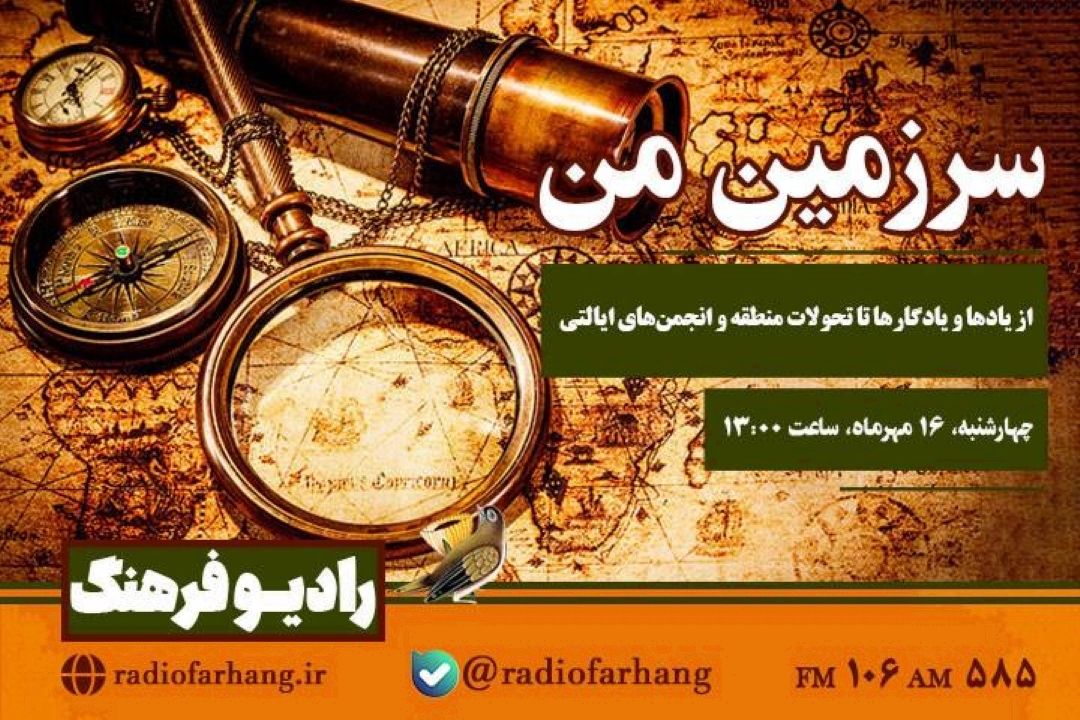 برنامه «سرزمین من» از گروه تاریخ و اندیشه رادیو فرهنگ، روز یكشنبه 13 مهر با بخش‌های متنوع تاریخی، سیاسی و گردشگری روی آنتن می‌رود.